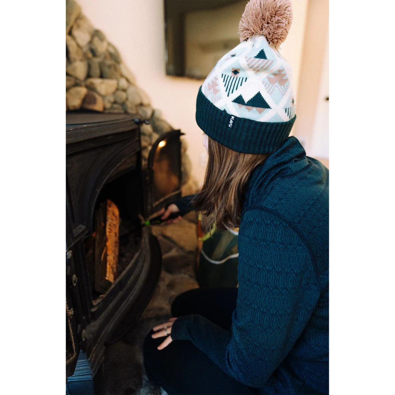 With a jacquard design and a playful pom on top, this beanie adds a cozy, cheerful touch to any cold-weather outfit. Its cuffed style ensures a snug fit, keeping you warm whether you're exploring the outdoors or just out for a stroll.