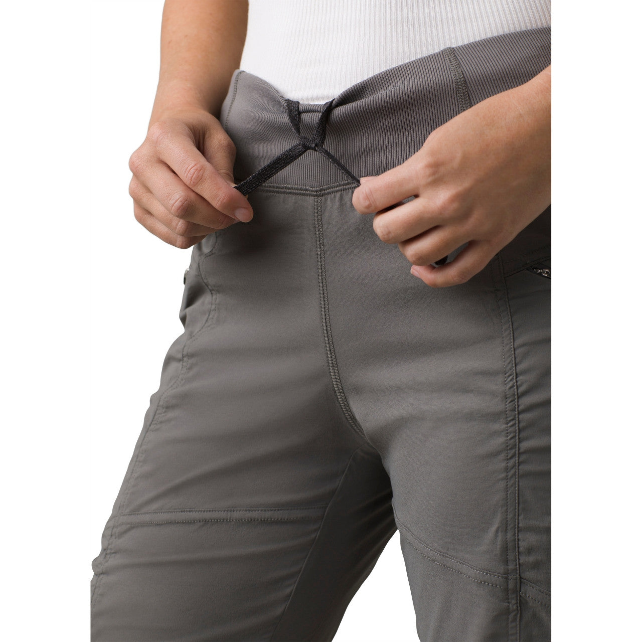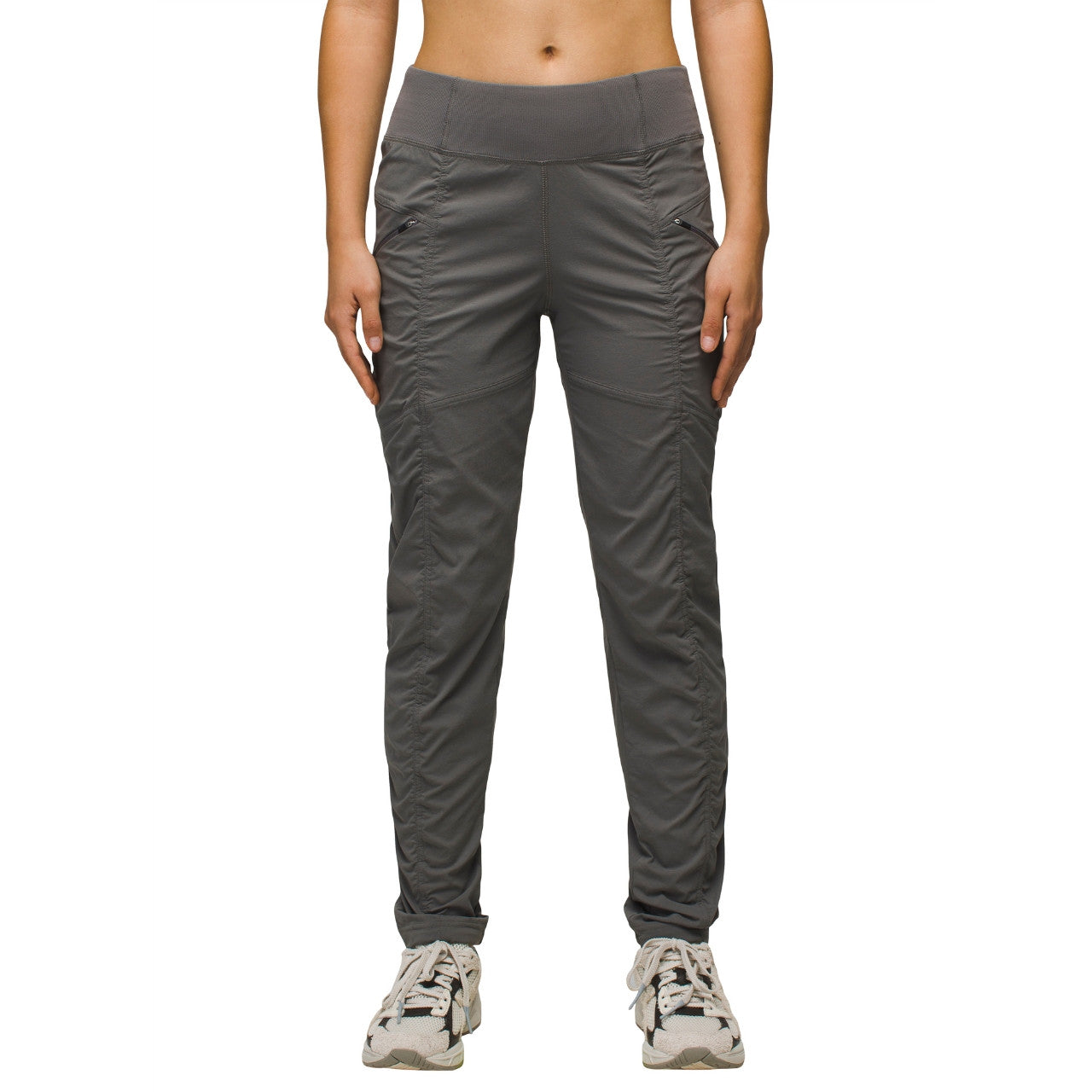 These pants are not just about comfort—they’re packed with practical features that make them perfect for outdoor activities. The flat front slash pockets with concealed zippers provide secure storage for your essentials, like keys or cards, while the slight shirring details along the seams add a touch of style. The adjustable hem with a continuous loop allows you to customize the fit at the ankle, ensuring these pants work with any footwear.
